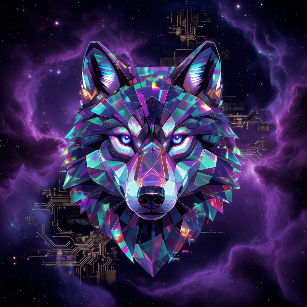 “Neon Crystal Wolf” is a striking digital collectible that fuses futuristic geometry with the spirit of the wild. Its shattered-glass fur and electric-blue gaze symbolize resilience and vision, while the cosmic nebula backdrop hints at boundless exploration. Subtle glitch effects and golden circuitry pay homage to the digital frontier, making this piece both a visual adventure and a conversation starter in any collection.