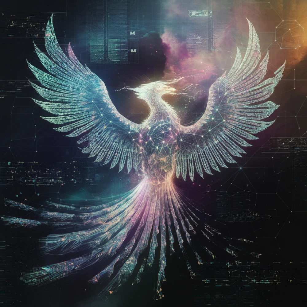 "Ethereal Phoenix #042 - A one-of-a-kind generative artwork representing rebirth in the digital age. This piece merges ancient mythological symbolism with cutting-edge blockchain technology, where each feather contains embedded smart contract fragments that shimmer with unique cryptographic signatures. Created using proprietary algorithms that ensure absolute uniqueness, this 1/1 edition explores the eternal cycle of creation, destruction, and digital immortality. Part of the 'Metamorphosis' collection. Collectible digital art token on the blockchain. Comes with full commercial rights and provenance verification.