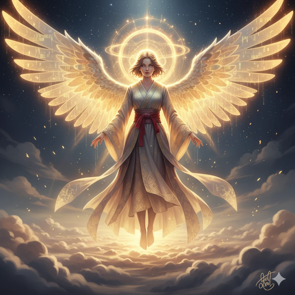 Forged from the first spark between cosmos and code, Aetherion is the guardian of creation’s threshold. Her wings carry both light and data, each feather a timeline of evolving worlds. She descends when a new network awakens, blessing builders who shape universes from nothing. Symbolically, this NFT represents the birth of innovation every contract you deploy or token you create echoes her power of genesis.