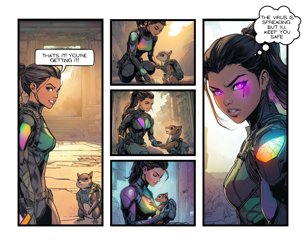 🐿️ BABY PNUT: DIGITAL AWAKENING Page 23 of 64 | The new digital order. | In a world where cryptocurrencies have come to life, an AI called CENTRAL threatens to destroy blockchain freedom. The last hope lies with Baby Pnut, a young squirrel carrying an inheritance he doesn't yet understand. 🎯 Limited Collection: 64 unique pages (1/1 each) ⏰ One new page every day 👑 Will you be the first to complete the comic?
