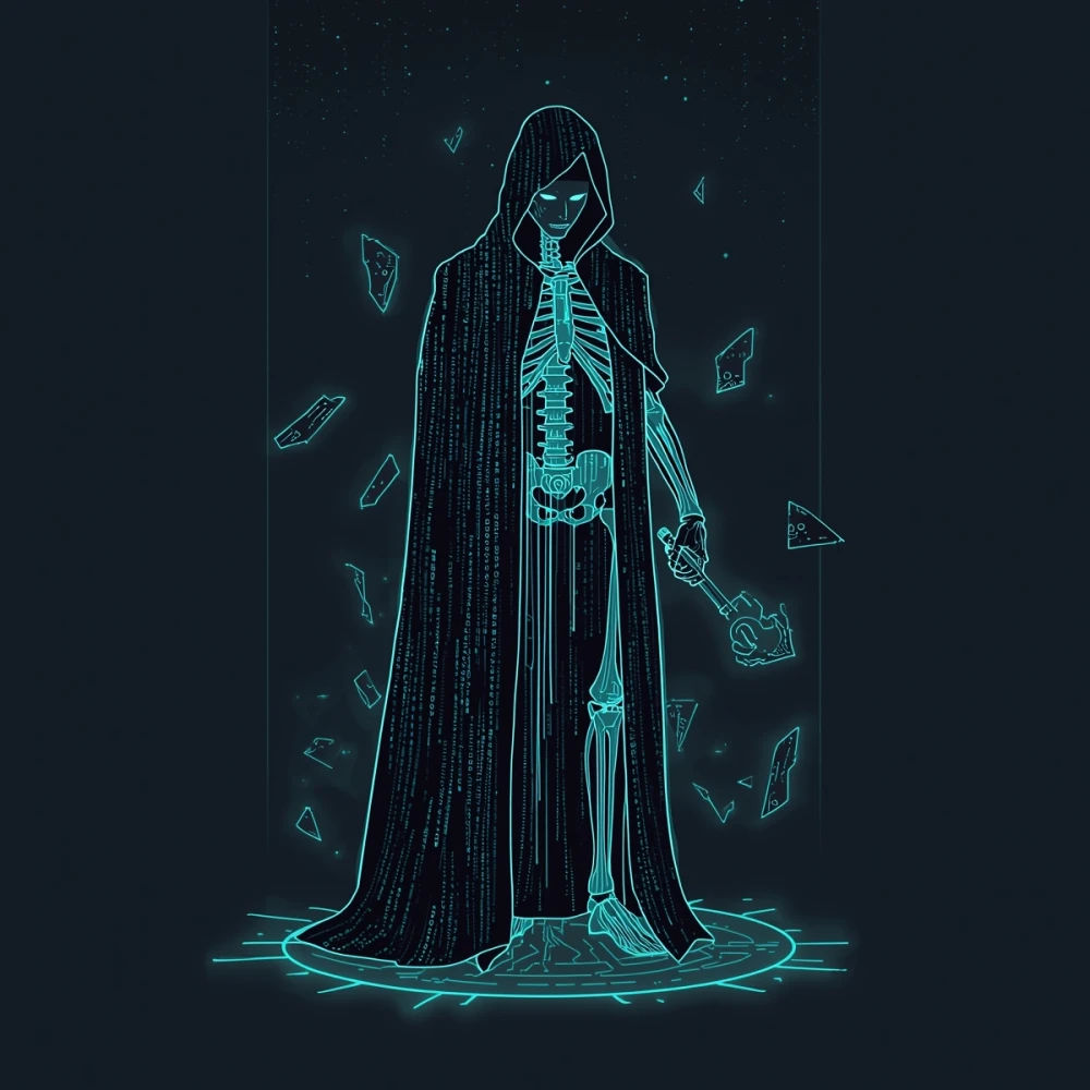 A lone sentinel standing at the threshold of the digital frontier. Half human, half circuit-spirit, his cloak ripples with neon data-threads. He holds a glowing key fragment that unlocks unseen networks. This piece represents the builder’s journey into testnets, a guardian of your code and creations.