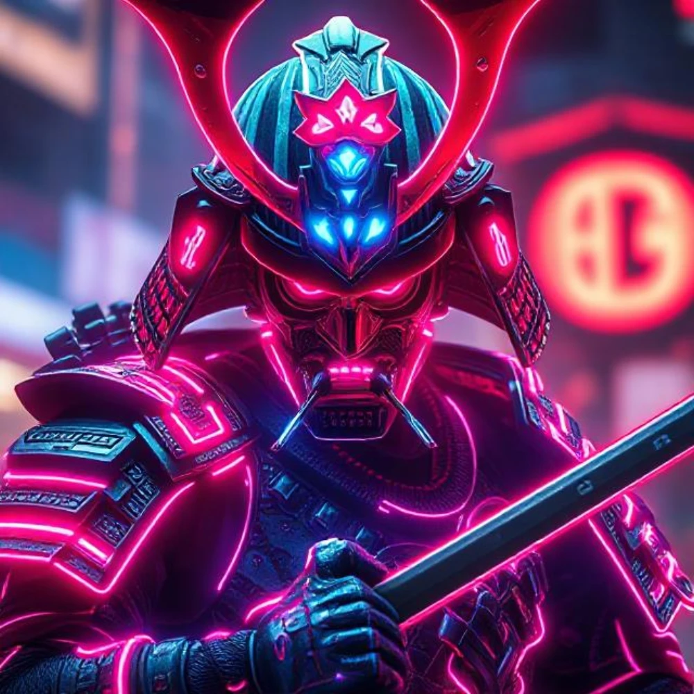 A unique neon samurai concept, blending creativity and modern storytelling with striking details.
