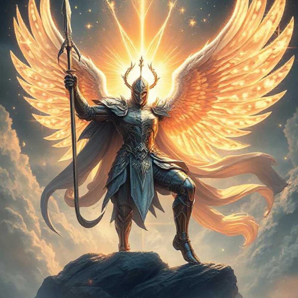 An imaginative vision of a celestial knight, crafted with surreal vibes and engaging details.