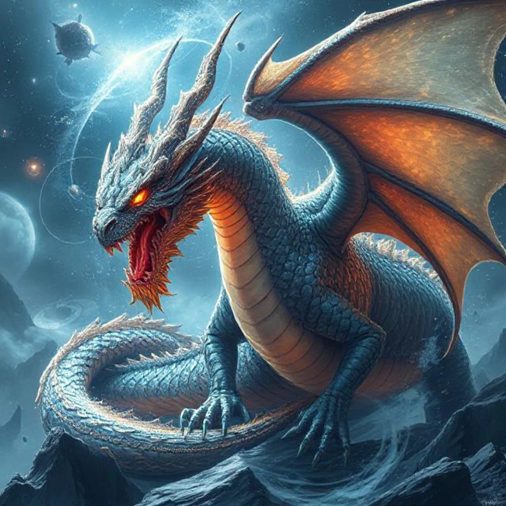 An imaginative vision of a cosmic dragon, crafted with surreal vibes and engaging details.