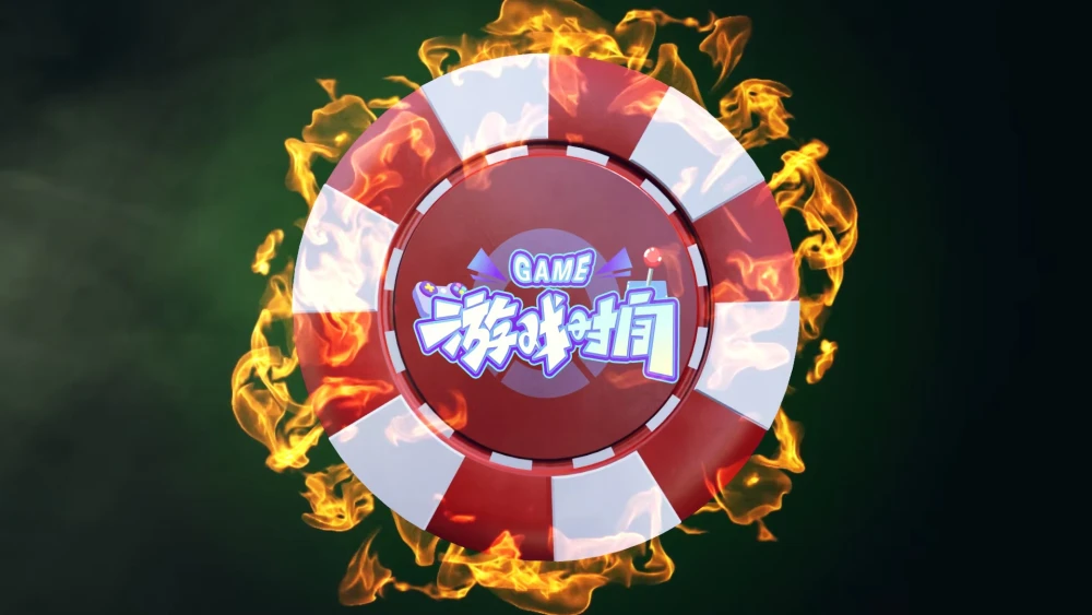 A casino - style chip with flames around it, and the words "GAME" and Chinese characters for "game time" on it.