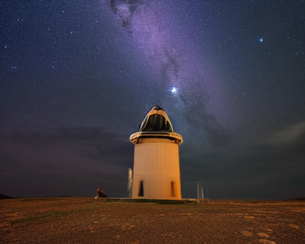 A lone observatory stands sentinel beneath a celestial canvas, where diamonds of twinkling stars are scattered across the velvet expanse, their soft whispers echoing through the stillness of the night, as the universe unfu