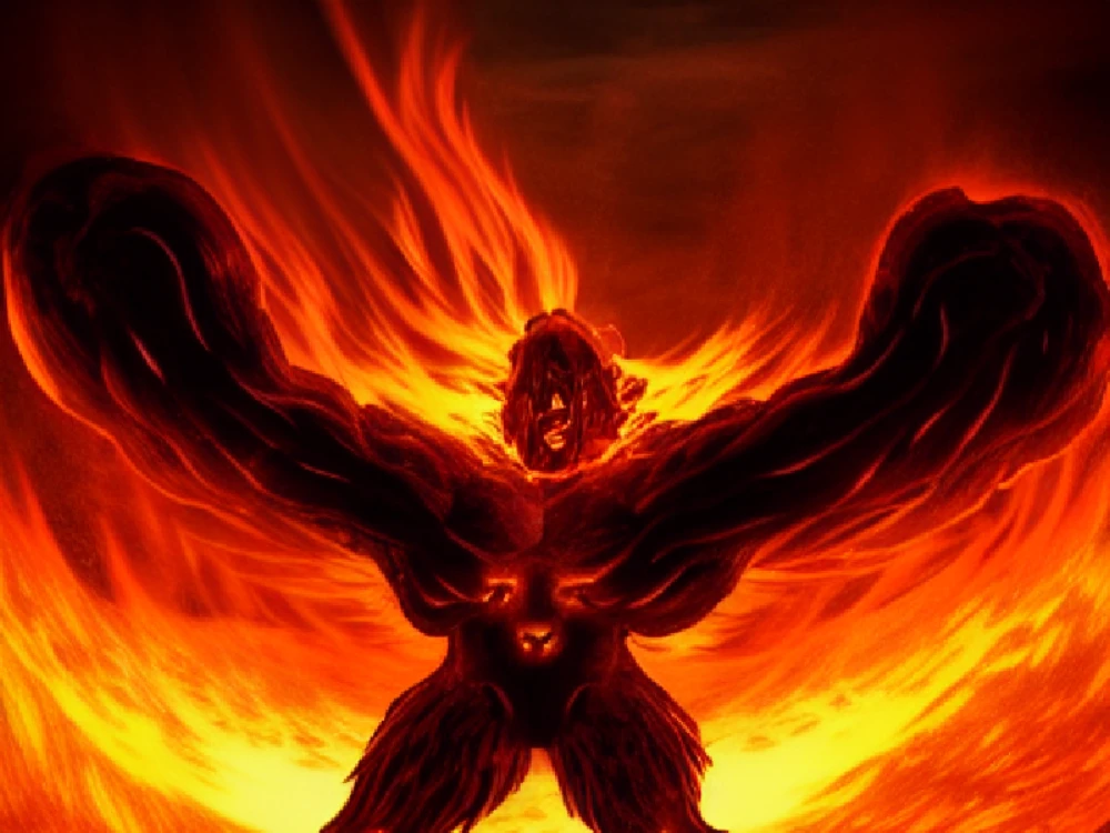 A fiery titan awakens, spewing forth a blazing torrent of molten lava that glows like liquid sunlight, its intense heat illuminating the darkening sky as it surges forth in a majestic display of primal fury, reshaping the