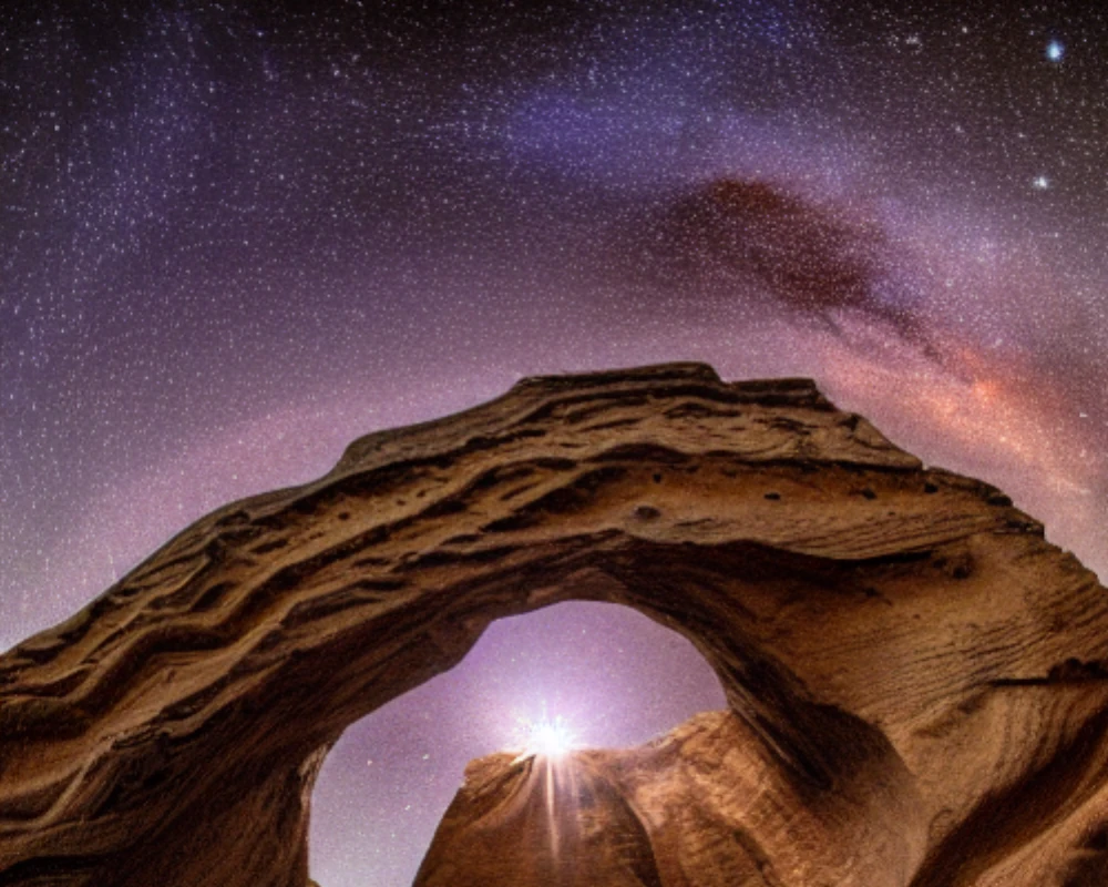 An observatory under a star-filled sky, A deep canyon carved by a swift river