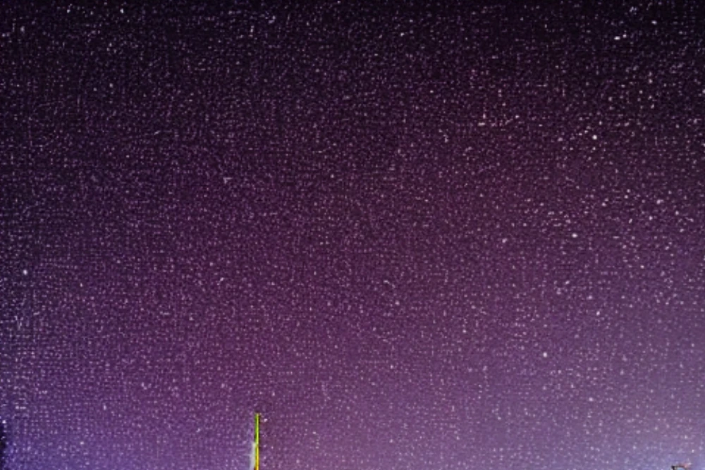 A packed stadium during a football match, An observatory under a star-filled sky