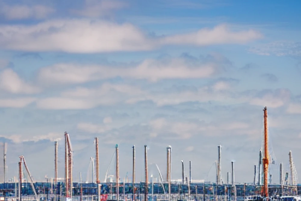 A vibrant waterfront hums with activity as majestic vessels converge, their towering masts a forest of steel against the cerulean sky. The air is alive with the sweet scent of saltwater and the cries of gulls wheeling over