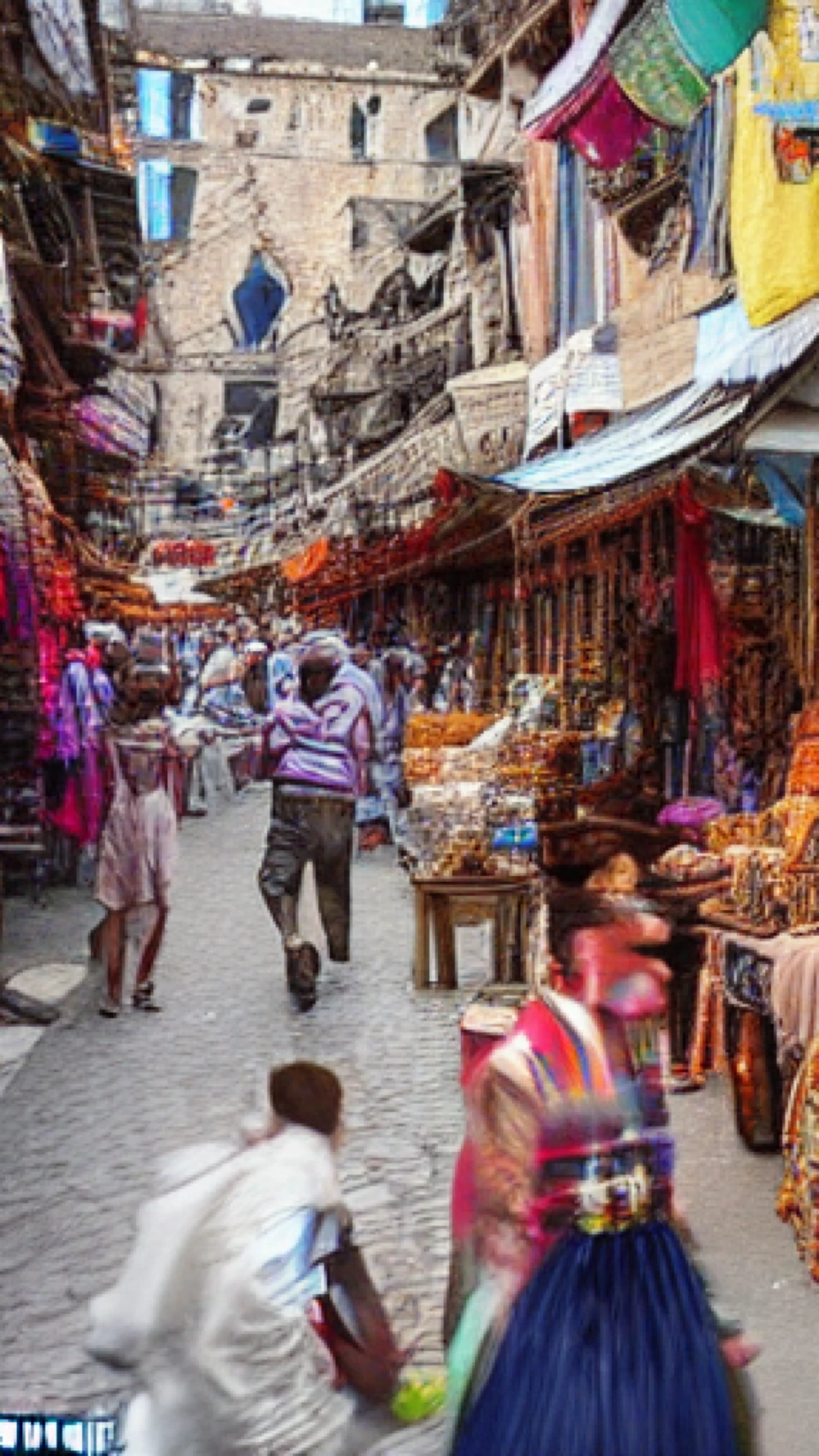 Vendors' vibrant cries echoed through narrow alleys, where intricately carved stalls spilled forth a kaleidoscope of spices, silks, and glinting trinkets. Incense wafted heavenward, entwining with the scent of sizzling mea