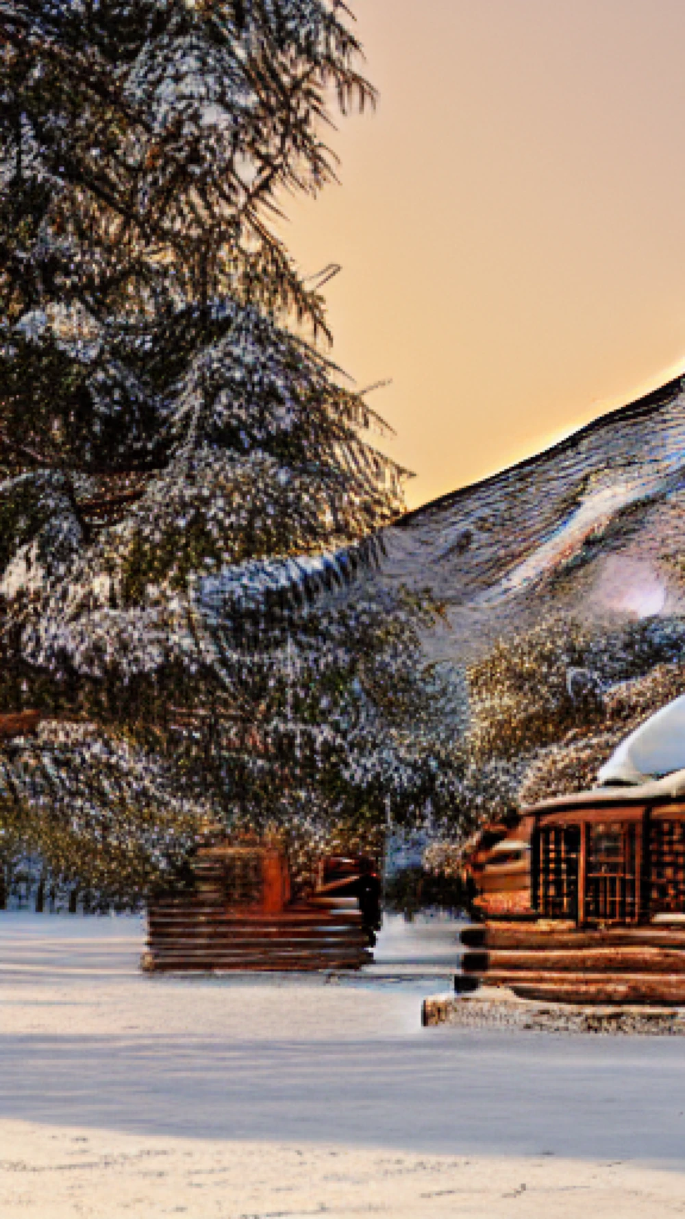 A cozy cabin in a snowy forest, The ancient pyramids of Egypt under the hot sun