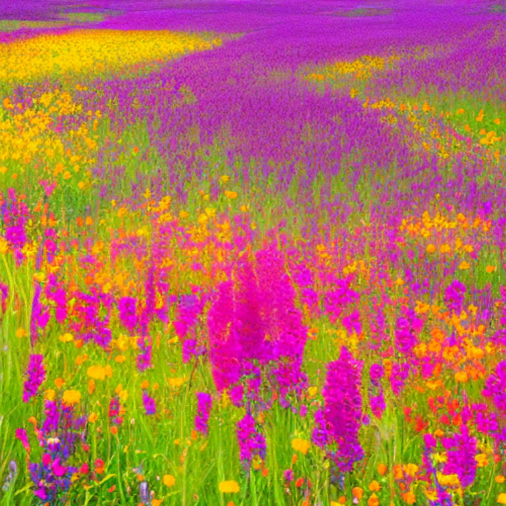 Vibrant petals dance in the breeze as a kaleidoscope of wildflowers sways gently in the spring meadow, painting the landscape with an artist's palette of colors – tender pinks, radiant yellows, and skyward-reaching blues – creating a living, breathing tap