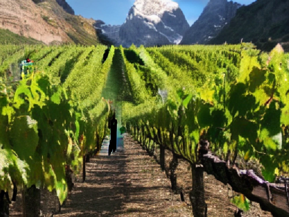 A vineyard with ripe grapes ready for harvest, A glacier slowly moving through a valley