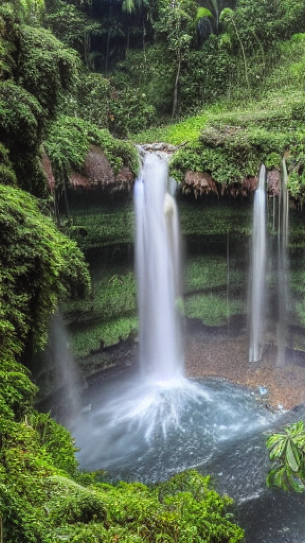 A bustling marketplace in an ancient city, A hidden waterfall in a tropical forest
