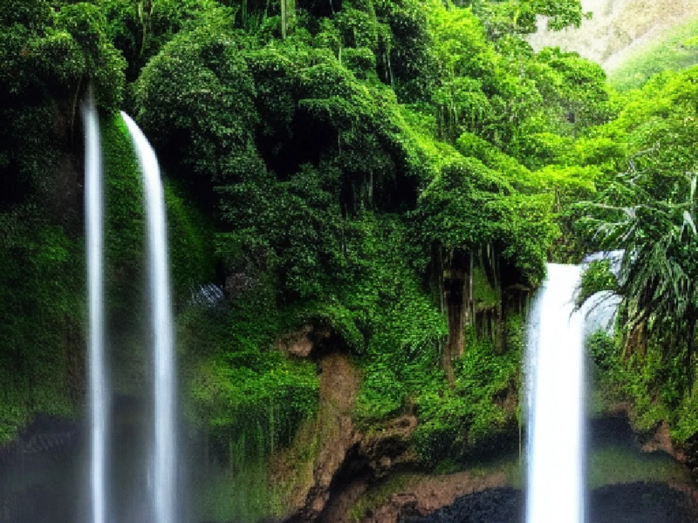 A majestic waterfall in a tropical rainforest, A majestic waterfall in a tropical rainforest
