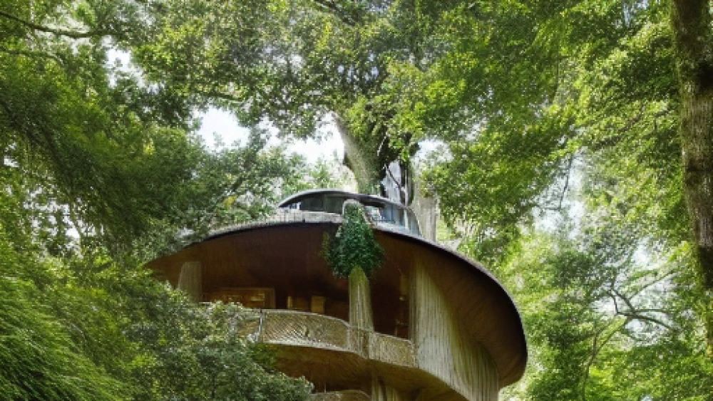 A treehouse in a dense forest, A large hedge maze in a stately home's garden