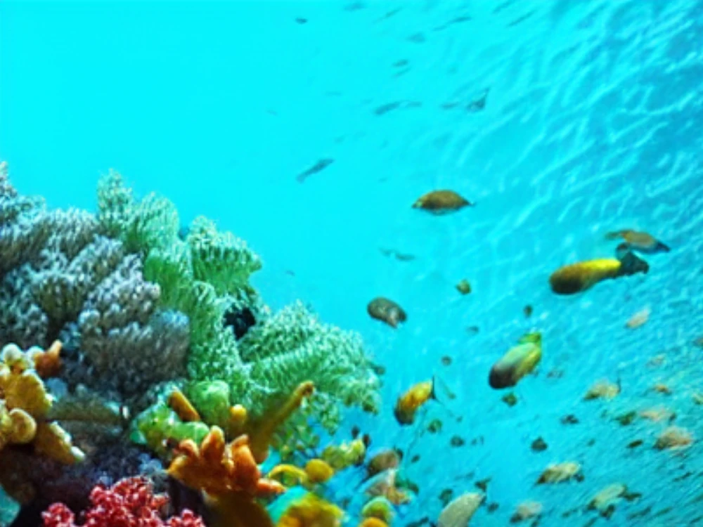 A colorful coral reef under clear blue water, A colorful coral reef under clear blue water