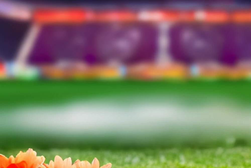 A packed stadium during a football match, A tranquil zen garden with a koi pond
