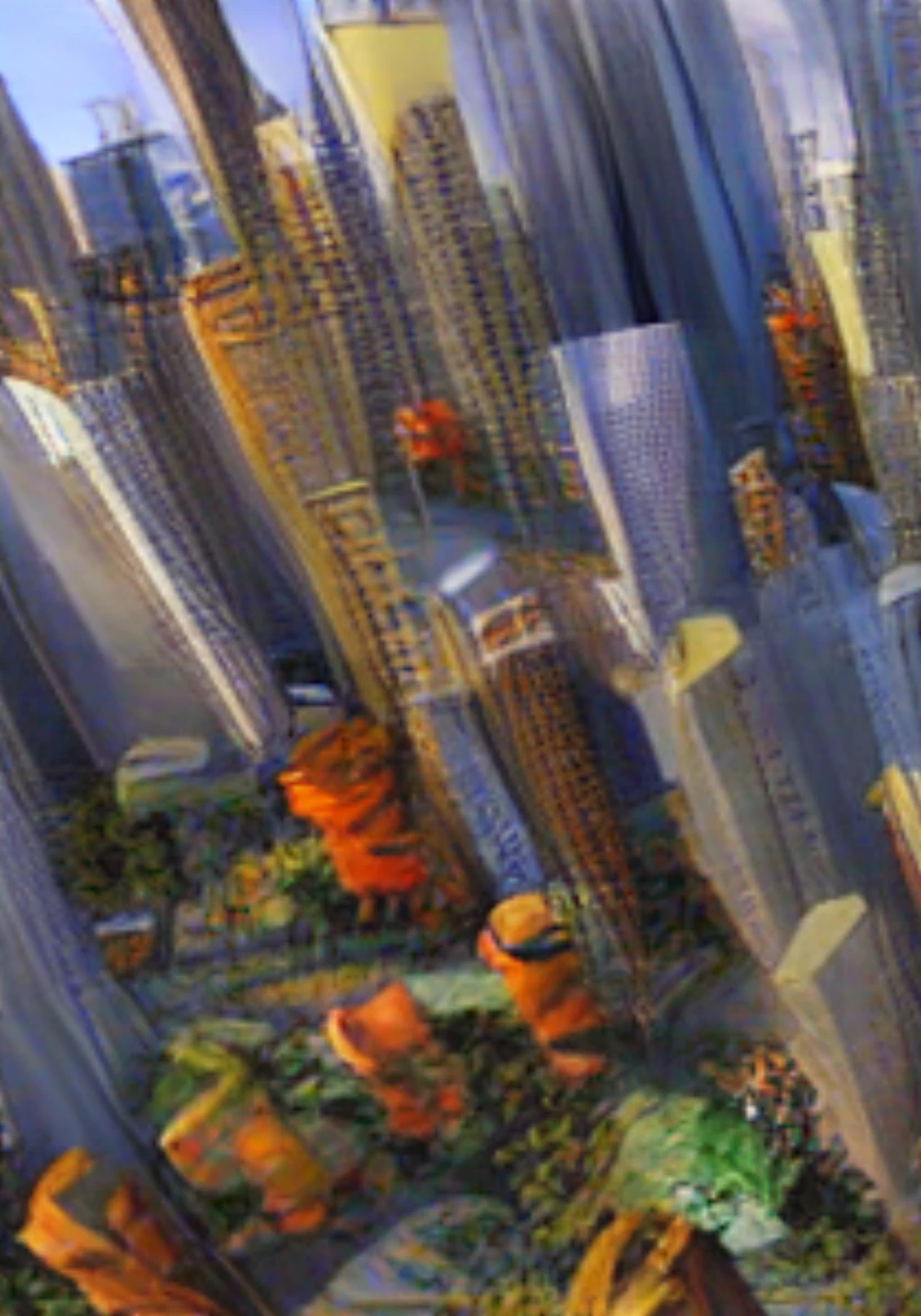 A futuristic city with towering skyscrapers, A pumpkin patch ready for harvest