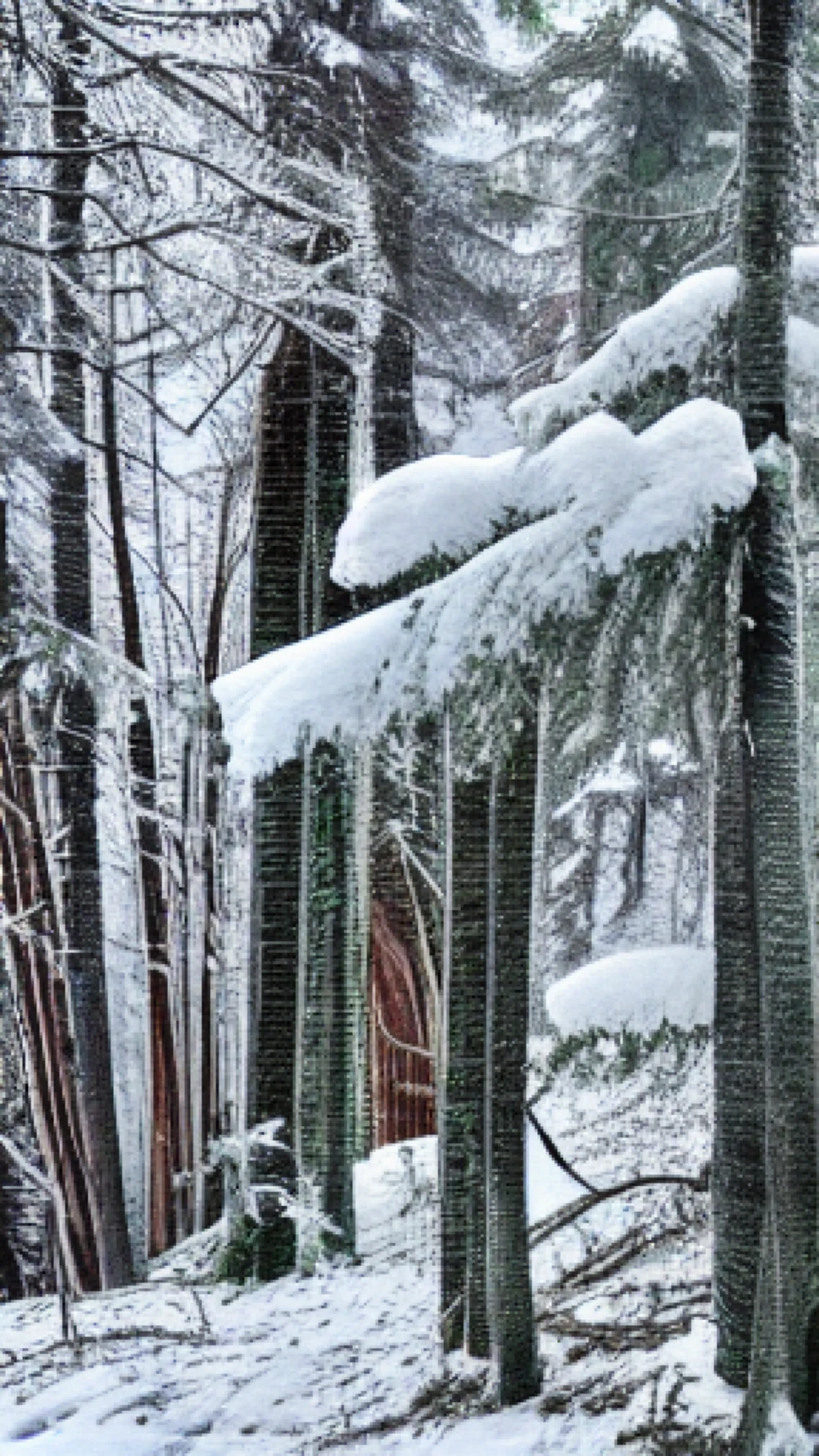 Snug within snow-encrusted evergreens, a charming cabin beckons, its wooden slats weathered to a silvery sheen. Frosty mornings dawn with quiet majesty, as snowflakes whisper secrets to the forest floor, veiling all in a s