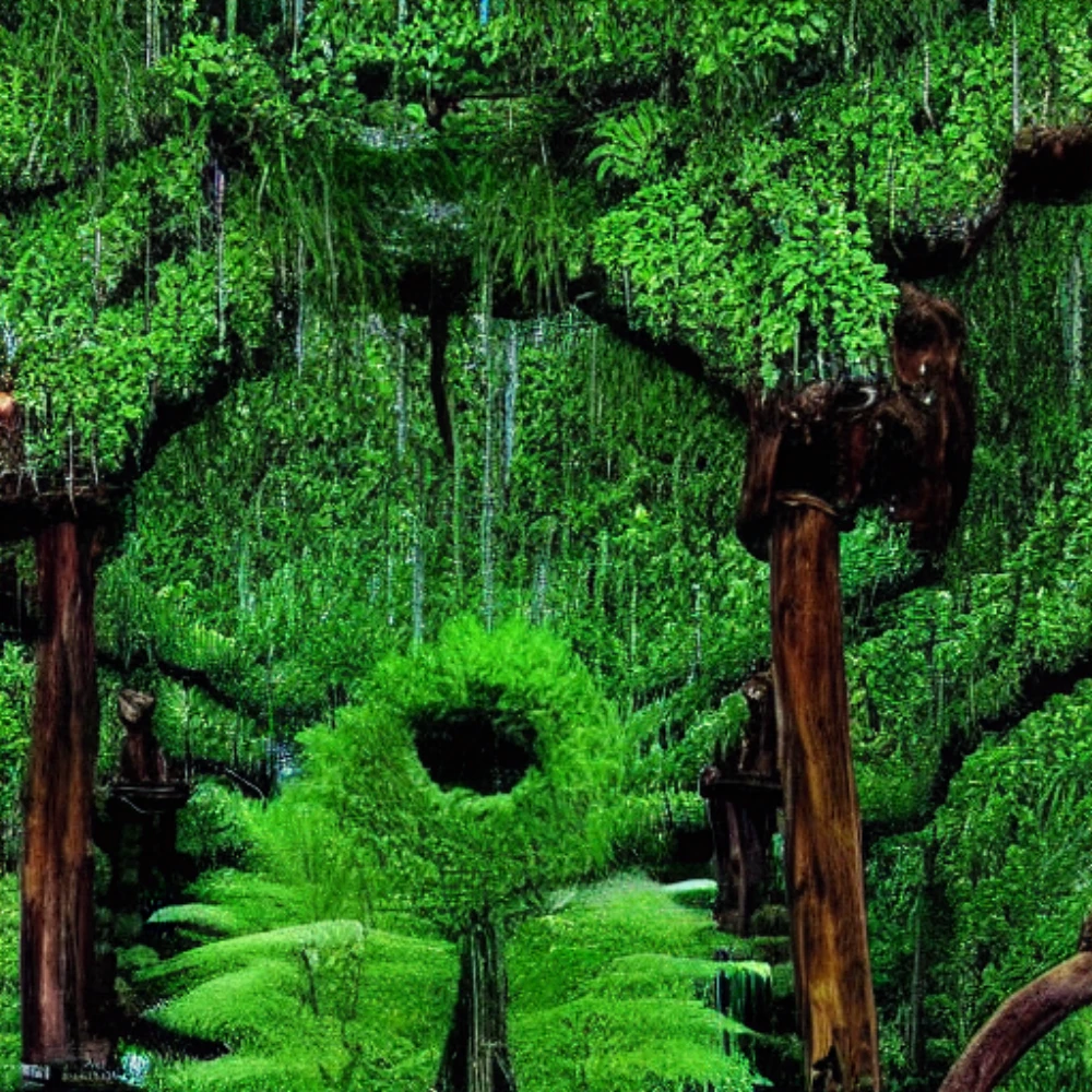 Vines as thick as ship's ropes snaked up ancient tree trunks, their canopies a riot of emerald green. Iridescent birds flitted between orchids that shone like jewels, while monkeys with fur as soft as silk lounged in the d
