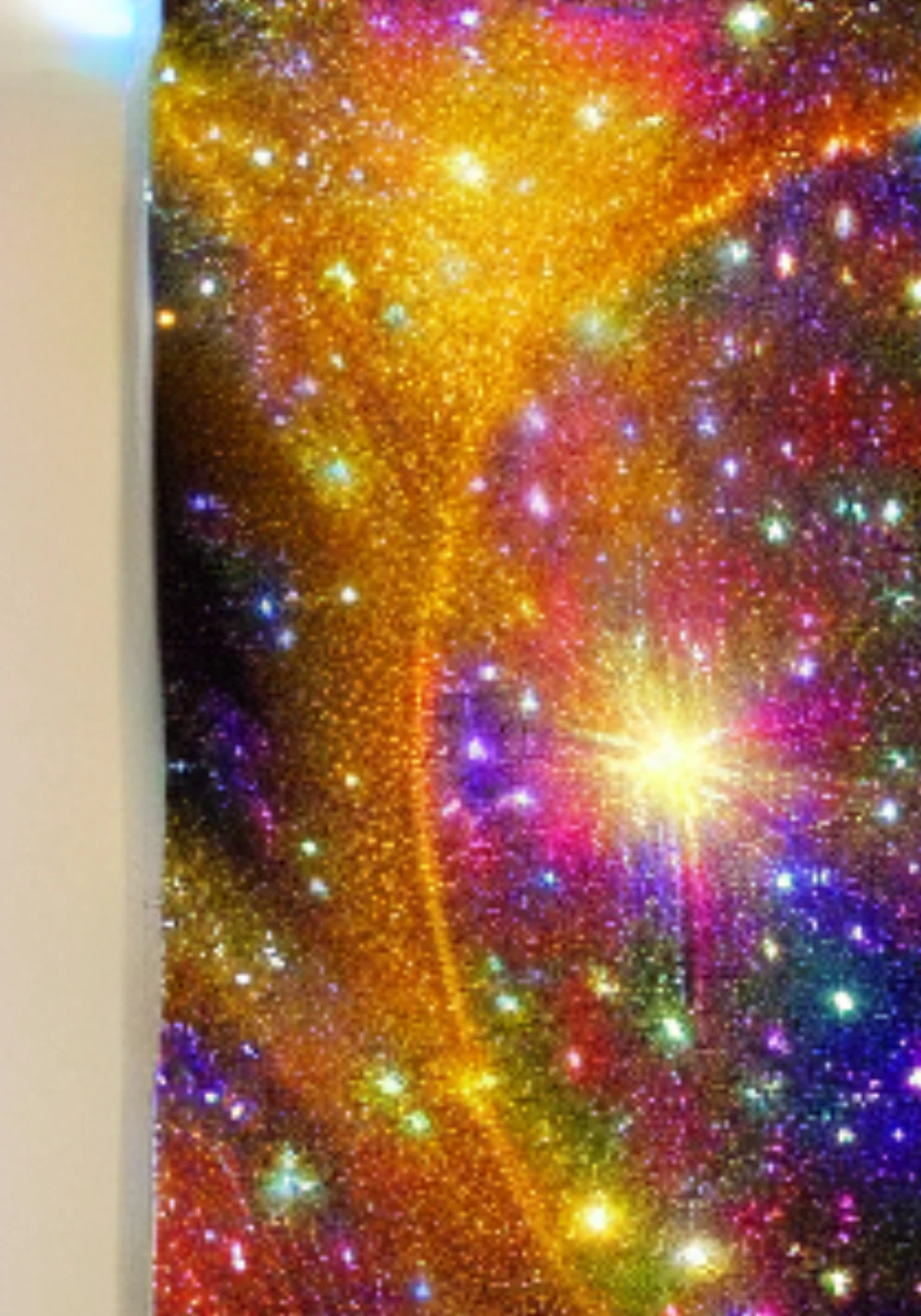 Cosmic canvas stretches before us, a twinkling tapestry woven from threads of iridescent stardust. Distant galaxies whirl like diamonds on velvet cloth, their soft luminescence illuminating the inky blackness. Stars sparkl