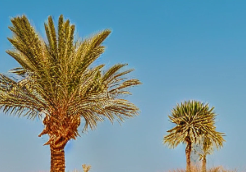 Amidst the endless dunes, a serene haven beckons: an oasis. Palm trees sway gently, their emerald canopies a vibrant respite from the scorching sand. A tranquil pool glimmers like a shar
