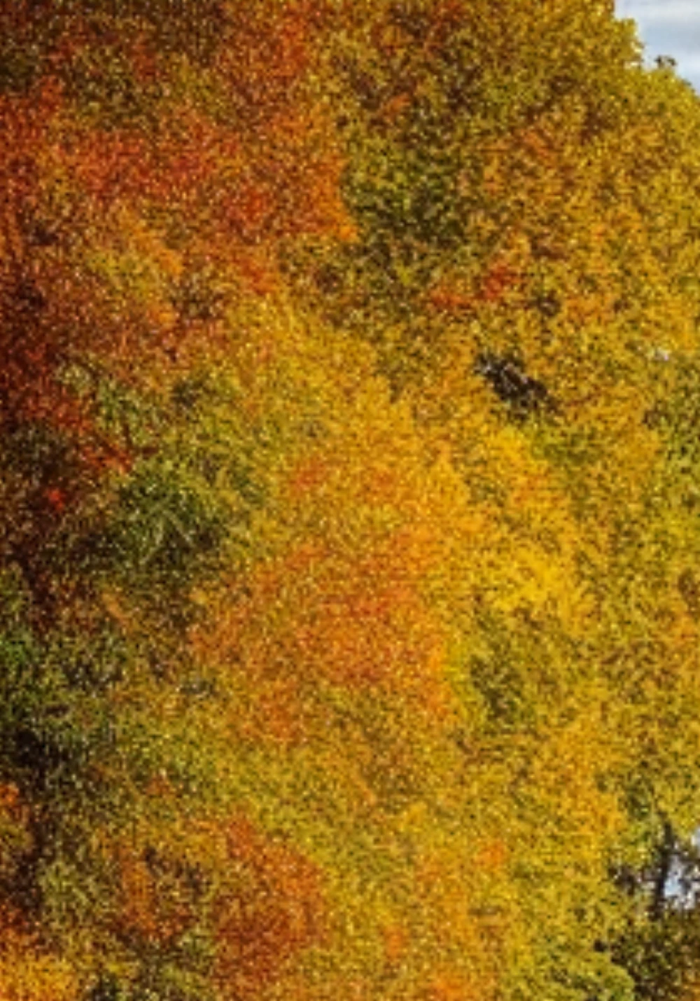 A serene country lane unfolded like a rust-hued ribbon, flanked by stalwart sentinels of autumn - trees ablaze with amber, crimson, and gold leaves that whispered secrets to the gentle bre