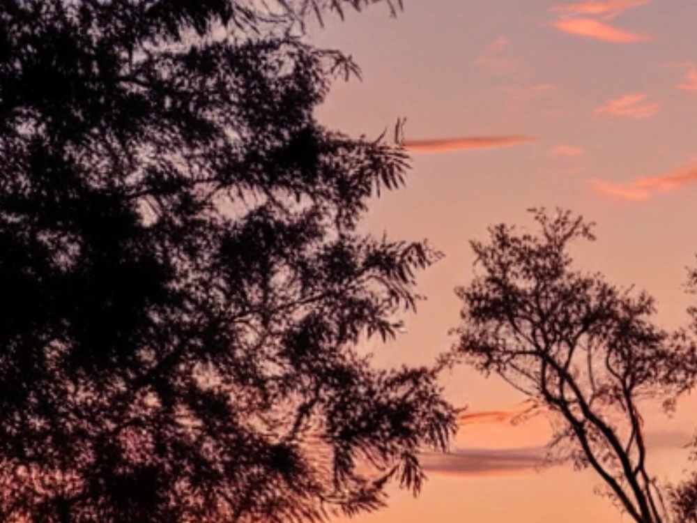 Hot air balloons floating over a landscape at sunrise, A bird's nest with eggs on a tree branch