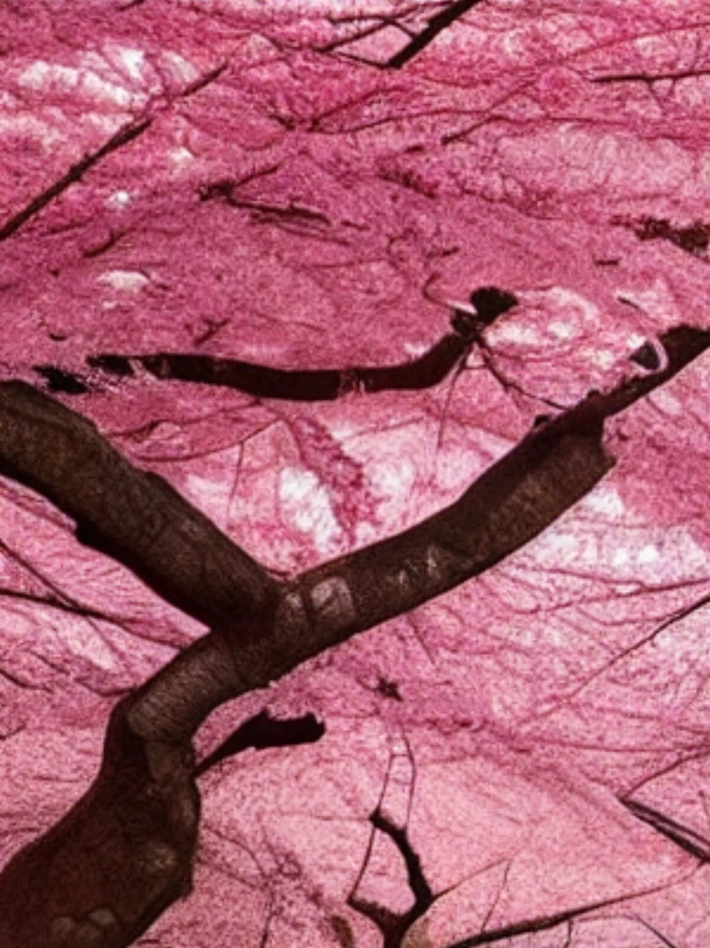 A majestic cherry blossom tree stands tall, its boughs aflame with delicate pink petals that shimmer like rose-tinted silk in the gentle breeze. Softly glowing, the blossoms unfurl like tender kisses on a spring morning, casting a serene ambiance beneath