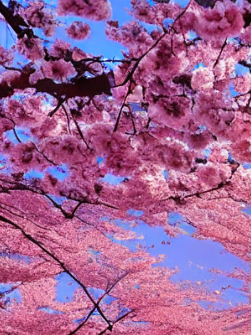 A majestic cherry blossom tree stands tall, its slender branches adorned with a kaleidoscope of delicate petals, soft pink hues unfolding like silk scarves dancing in the gentle breeze, releasing sweet fragrances that waft