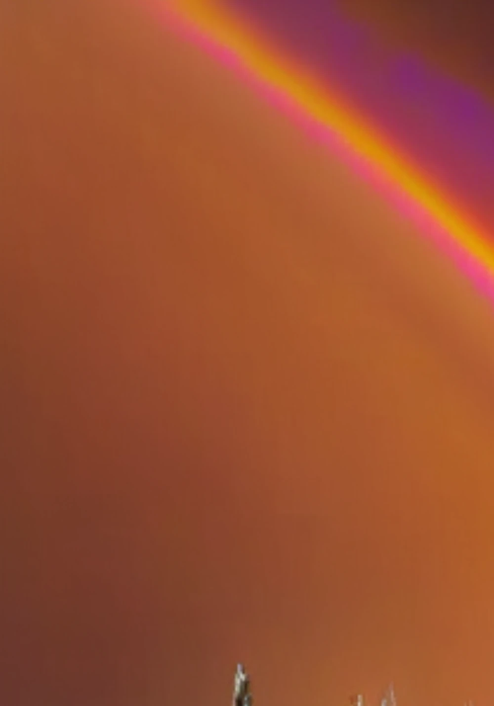 A futuristic city with towering skyscrapers, A stunning rainbow after a summer rain