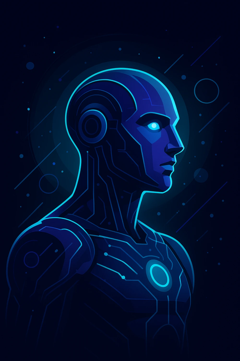 Quantis — A futuristic digital being illuminated by glowing circuits and ethereal light, symbolizing the fusion of consciousness and technology in a new digital era.