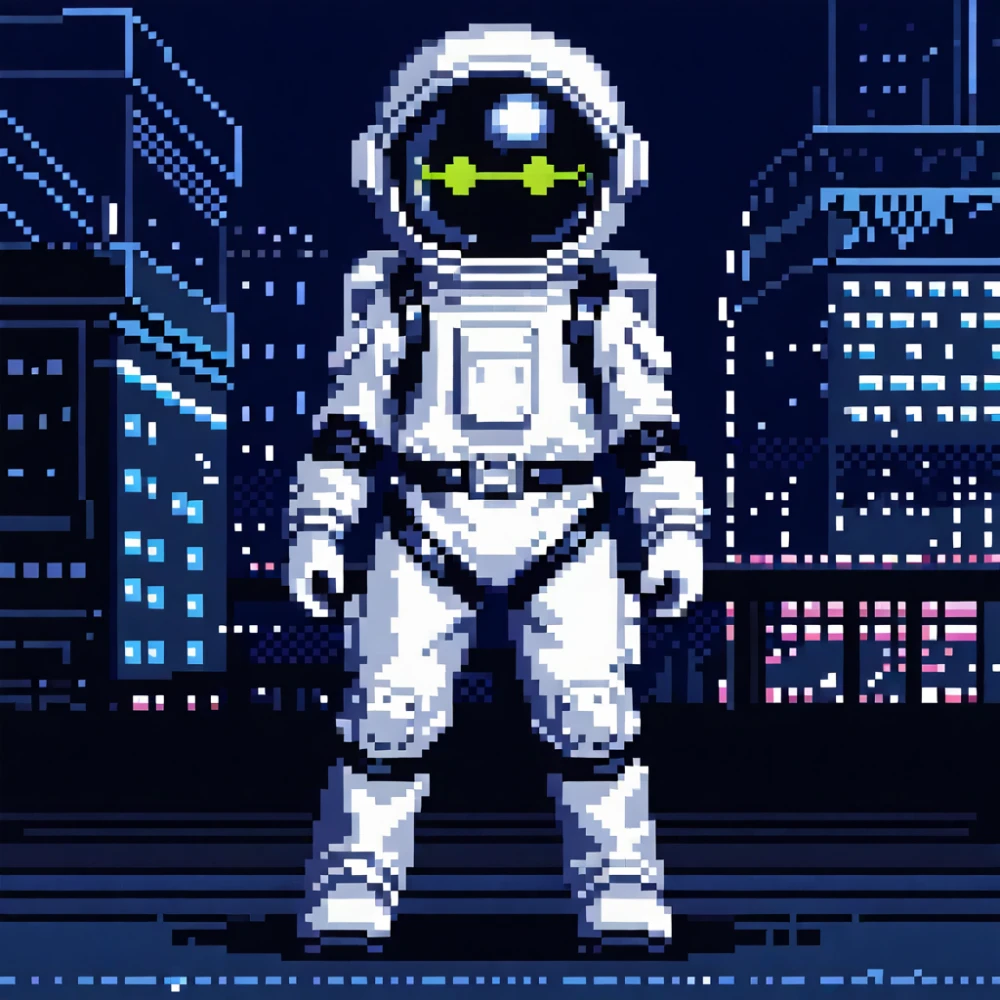 Adorable astronaut pixel NFTs on adventurous journeys through neon cyberpunk space.