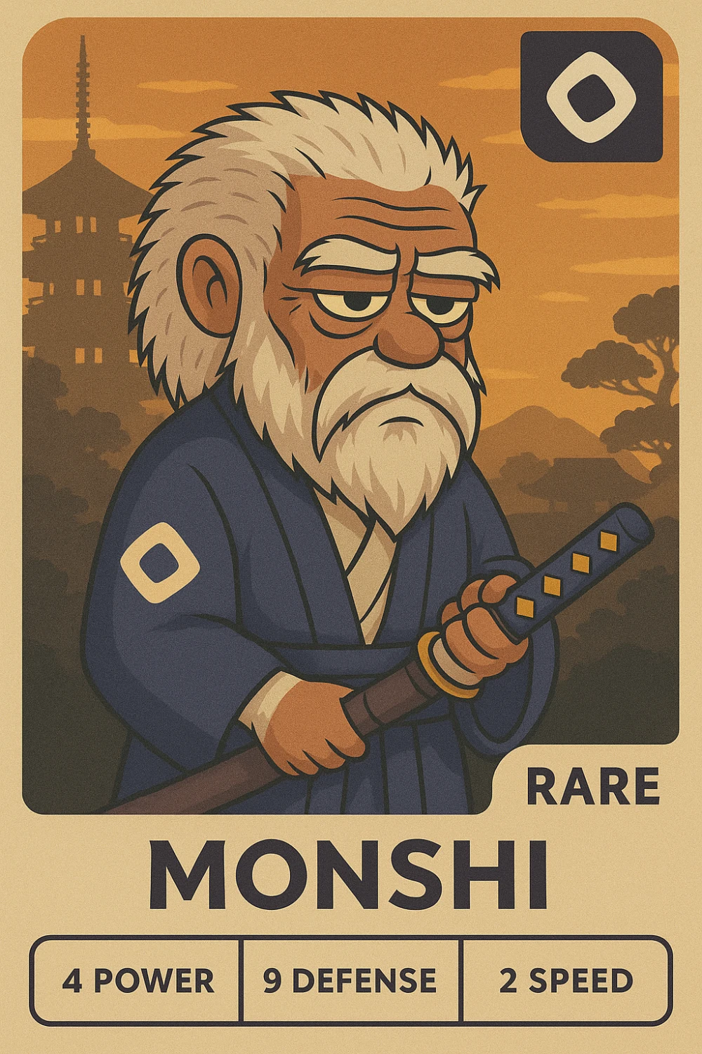 An aged master of the blade with sandals and wisdom beyond time. He carries the Monad symbol on his robe—and in his soul.