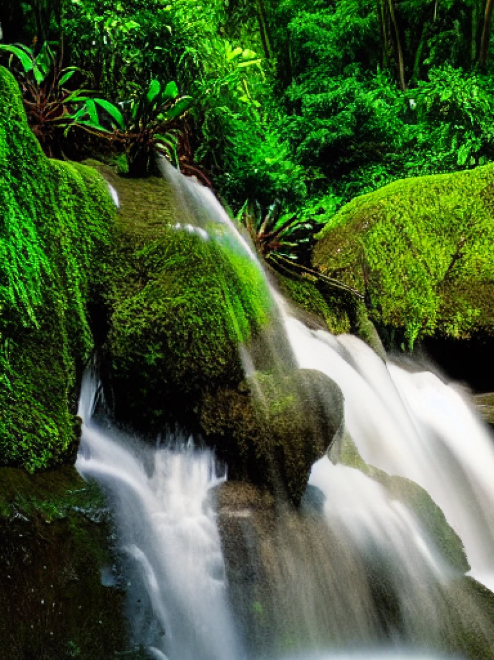 A stunning rainbow after a summer rain, A hidden waterfall in a tropical forest