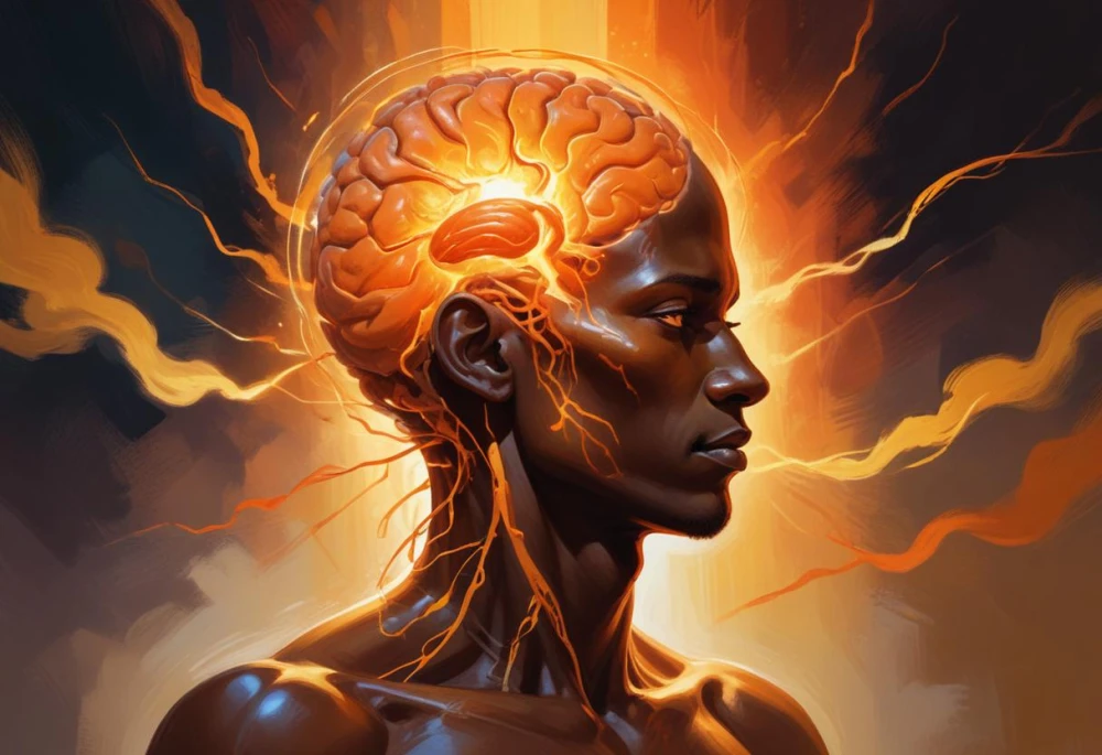 A blazing mind, crowned with golden fire—this soul stands at the edge of thought and divinity