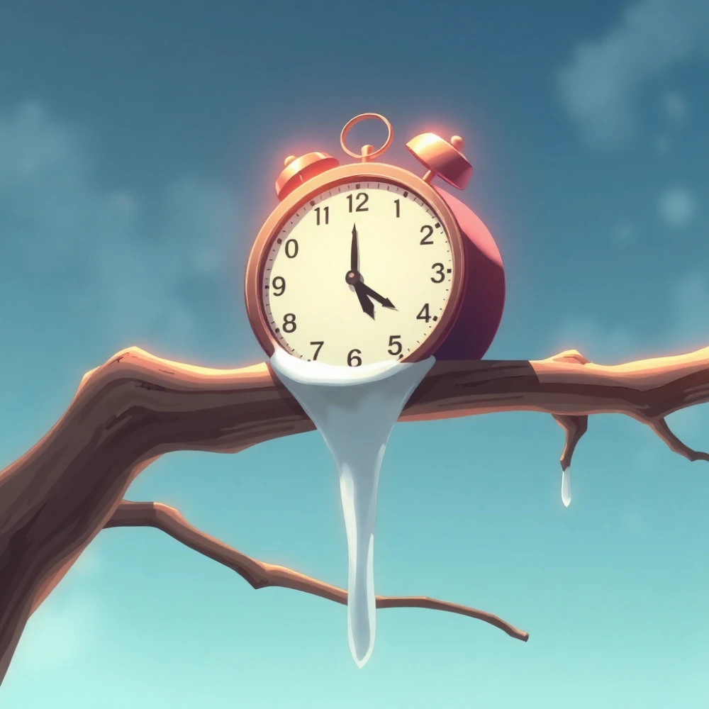 A clock on a branch with water dripping