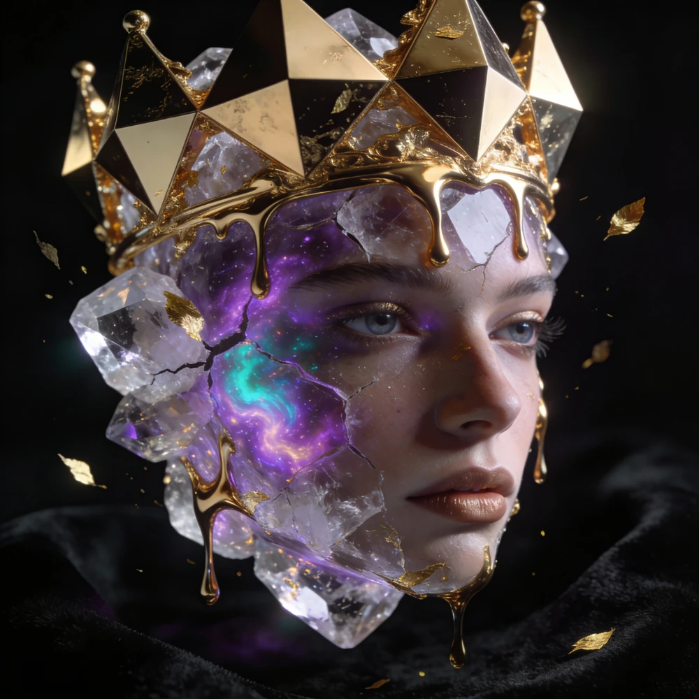 The Royal Anomaly is an ultra-high-fidelity PFP collectible that pushes the boundaries of digital opulence. Each NFT is a surreal, crown-like object crafted from impossible materials: glowing liquid gold, cracked diamond dust, and woven starlight. It acts as an Elite Membership Key, granting exclusive access to collaborations with luxury digital fashion houses and invitations to curated, high-value art events in the metaverse.